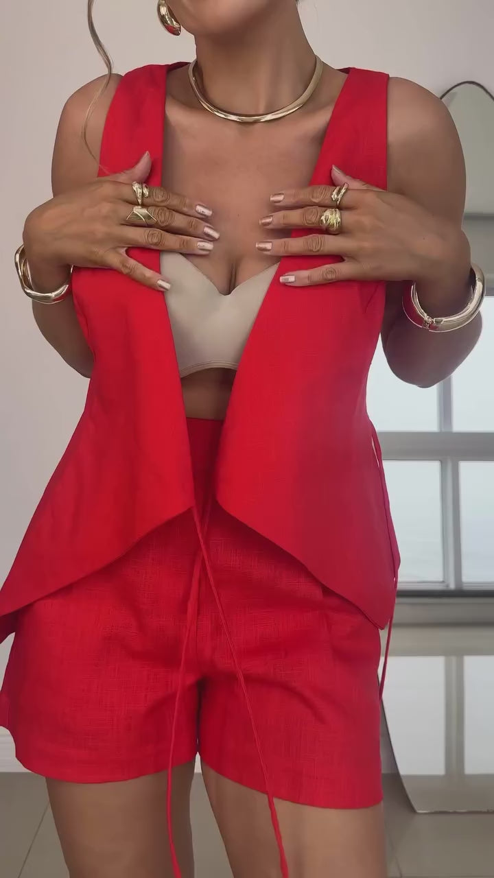 Com um decote em V envolvente e detalhe amarrado na cintura, o top cria uma silhueta feminina e equilibrada. O shorts de corte solto complementa o conjunto com charme e praticidade, garantindo conforto sem abrir mão da elegância. Perfeito para passeios, encontros casuais ou momentos de lazer, ele se adapta com facilidade ao seu estilo.