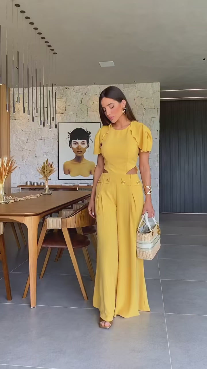 Macacão Francesca Feminino de Manga Borboleta e Botões Dourados – Sofisticação e Poder em Cada Detalhe