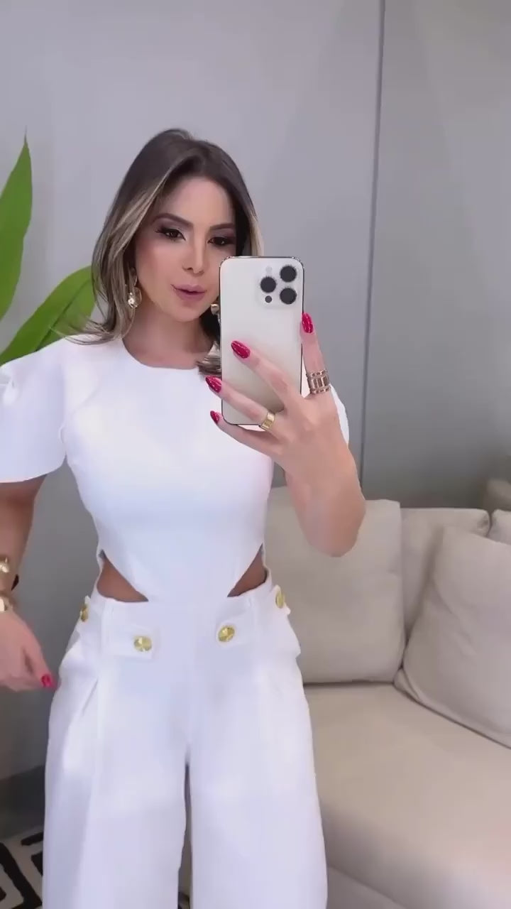 Os recortes laterais conferem sensualidade sutil, enquanto o corte reto das pernas garante imponência e fluidez. A cintura marcada valoriza a silhueta com harmonia, e os acabamentos refinados refletem o cuidado artesanal presente em cada peça. Cada costura é um convite à autoconfiança e à elegância sem esforço.